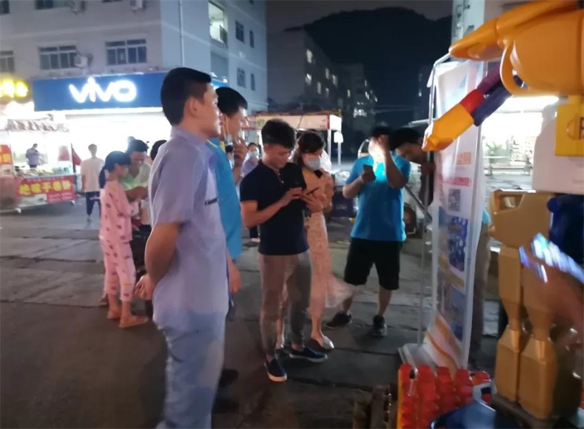 票數你追我趕,排行榜第一位輪流做,這時候是提現人脈和拉票技巧的時候啦!朋友圈也給“吉安大軍”包圍,很快我們也包圍了各自的微信群,各隊差距變得越來越不明顯,在雙方展開激烈的線上廝殺之時,越前隊率先出大招,夜市拉票!他們決定把他們的作品機器人搬出夜市,勇敢的向別人展示他們的作品,進行線下拉票。