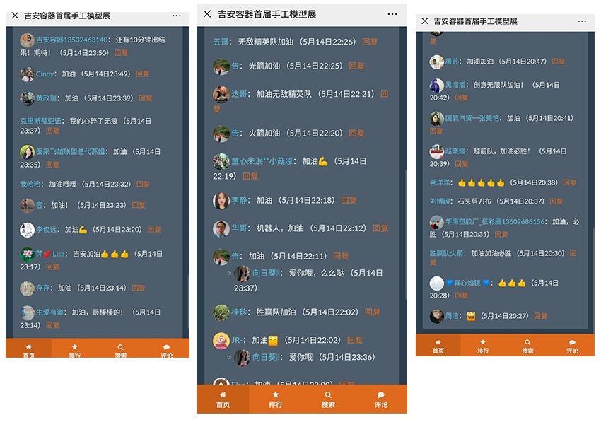 首屆創意手工模型大賽圓滿落下帷幕,感謝每一位支持我們的朋友們,正是因為有了您們的支持和鼓勵,使得我們整個團隊更加充滿信心,我們將繼續發揮創新、專研、拚搏的精神,本次活動帶給我們的刺激、興奮、驚險、也更深刻的體會到擔當、分工、合作、協助、理解的重要性。我們的拉票行為可能會給大家帶來困擾,給您們添麻煩了!活動的成功離不開每一位客戶朋友們對本次活動的包容及大力支持!再次感謝!我們將繼續發揚“吉安精神”,為客戶提供更高價值,為團隊奉獻更大力量!
