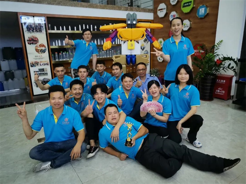 越前隊采用機油瓶係列產品進行機器人造型拚接,機器人代表科技,代表未來,同時也象征著對未來的目標和向往!寓意著公司以後能不斷發展壯大、向美好的未來奮力前行!隻有想不到,沒有做不到,物盡所用,人盡所能,我們就是無所不能創意無限的變形金剛。