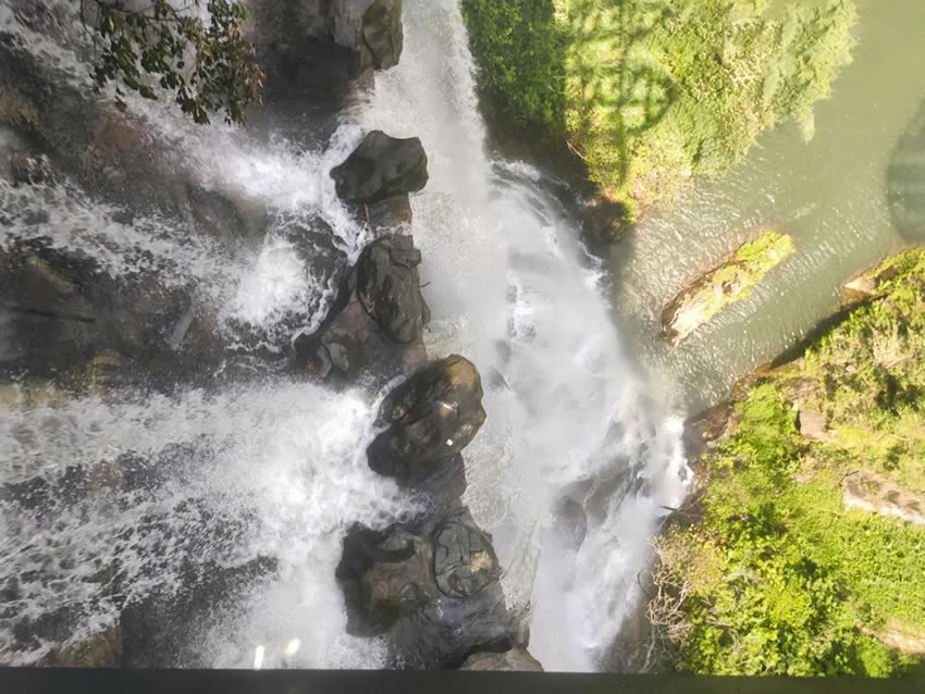 從玻璃棧道俯拍到的瀑布,氣勢磅礴!