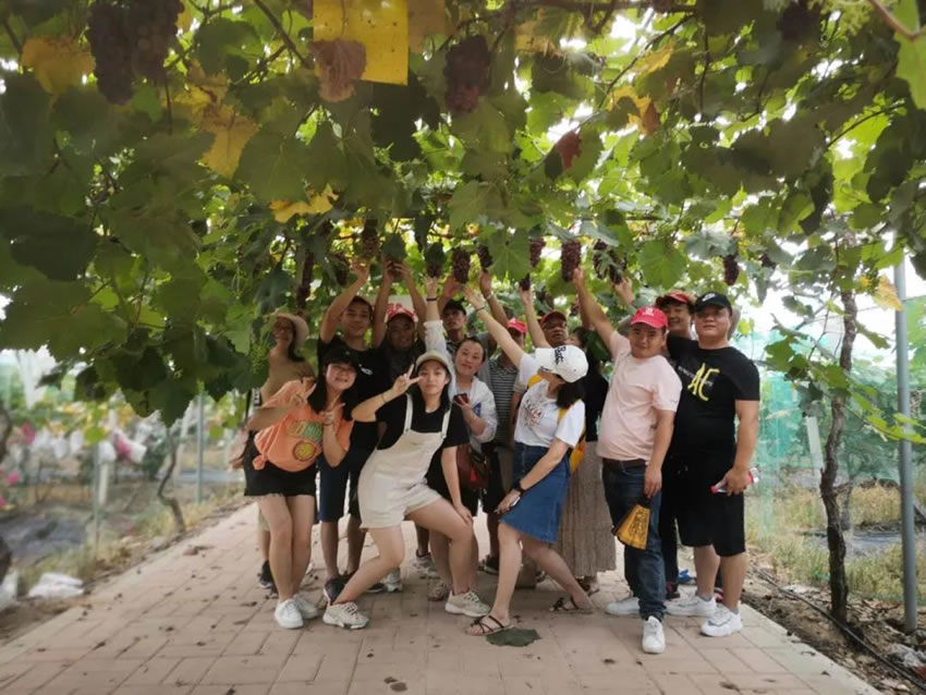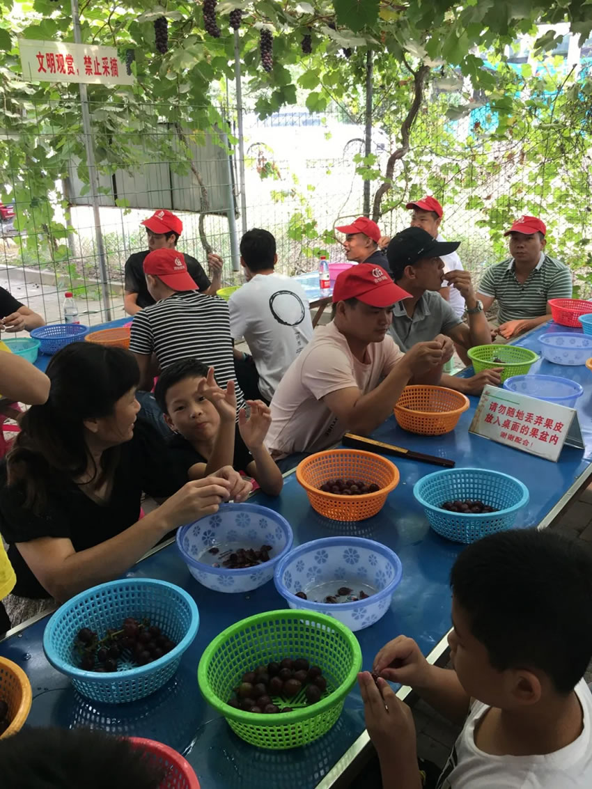 享用完酒店的早餐後,我們一行來到【醇葡鄉村.葡萄】農家果園,該果園是目前清遠最大的高科技葡萄種植園。品嚐了果大味甜的新鮮葡萄後,開心的眾人還在果園裏進行了舞蹈PK。各組組長帶領組員就公司平日裏練習的舞蹈進行比賽。果園老板都被大家的舞姿吸引,詢問“你們是哪裏的公司,怎麼如此具有活力?”“我們是manbetxAPP安卓的團隊”大家自豪響亮地回應道,讓人感動!