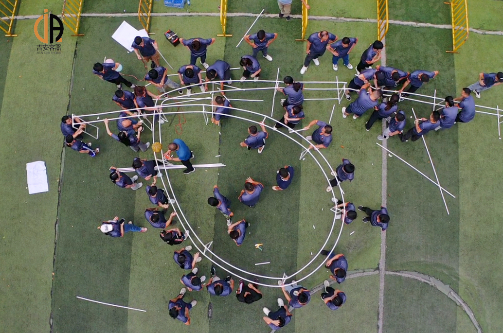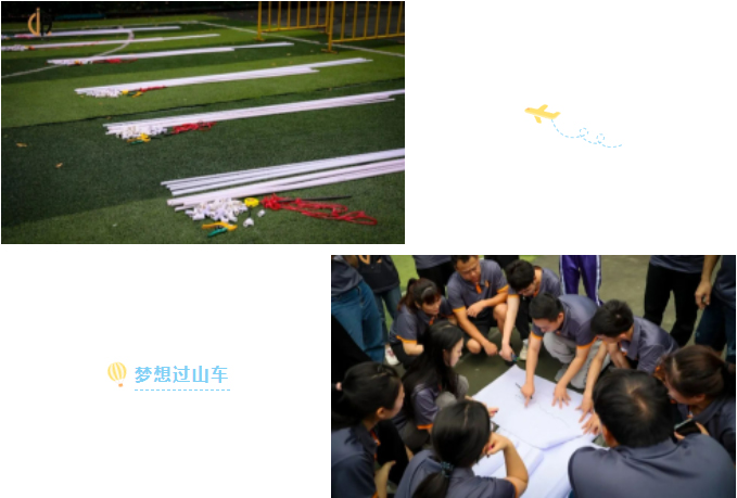 “夢想過山車”結合過山車的主題,來挑戰每一位學員的決心和恒心。從智力、承受力、動手能力各方麵給學員施加壓力,與團隊成員一起來設計和建造這個世界上最令人興奮和最具創意的過山車。全隊所有隊員利用現有的道具搭建一個總長不少於10米高不小低於1.5米的過山車,且包含起點、直行、360度大循環、不少於一個的上坡及下坡、最後以不低於35公分為終點,要保證籃球從從起點最高點運行到最低處,且在中途球不可以躍出跑道。每組可以用官方提供的道具來分組拚裝。