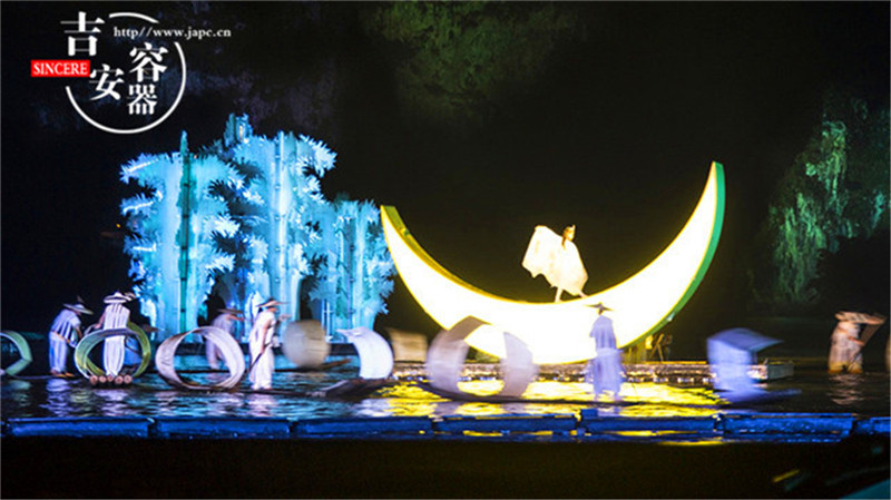 晚餐後,前往觀看【印象劉三姐】(約1小時)印象劉三姐是世界上最大的山水實景劇場,坐落在漓江與田家河交彙處,與聞名遐邇的陽朔書童山隔水相望,既強調藝術的表現,也高度重視環境保護,整個工程與大自然融為一體。