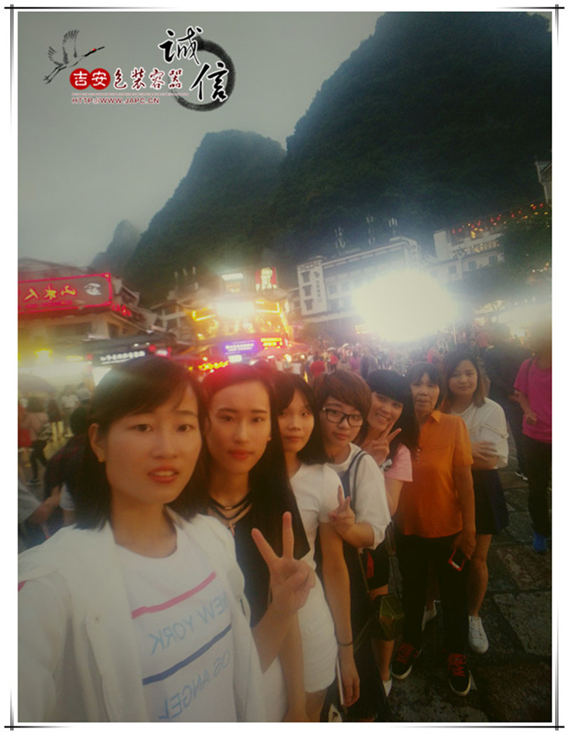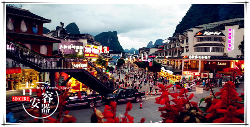 第二批的同事則由於天氣原因河水漲潮沒有觀賞到壯觀的劉三姐演出,改為自由活動遊覽陽朔具三百年曆史、名登“世界旅遊大典”充滿外國醉人情調之【陽朔西街】。在 “不逛洋人街,等於沒到陽朔來”體驗一下西街酒吧的小資情調:“丁丁” “原始人”的熱情,“陽朔第一燒”的烤雞,“四海”和“熱舞會所”的狂野音樂,“沒有飯店” 的溫馨氛圍。新起的酒吧也很不錯“馬可波羅”“陌陌”“菲林”感受陽朔另一麵的激情。