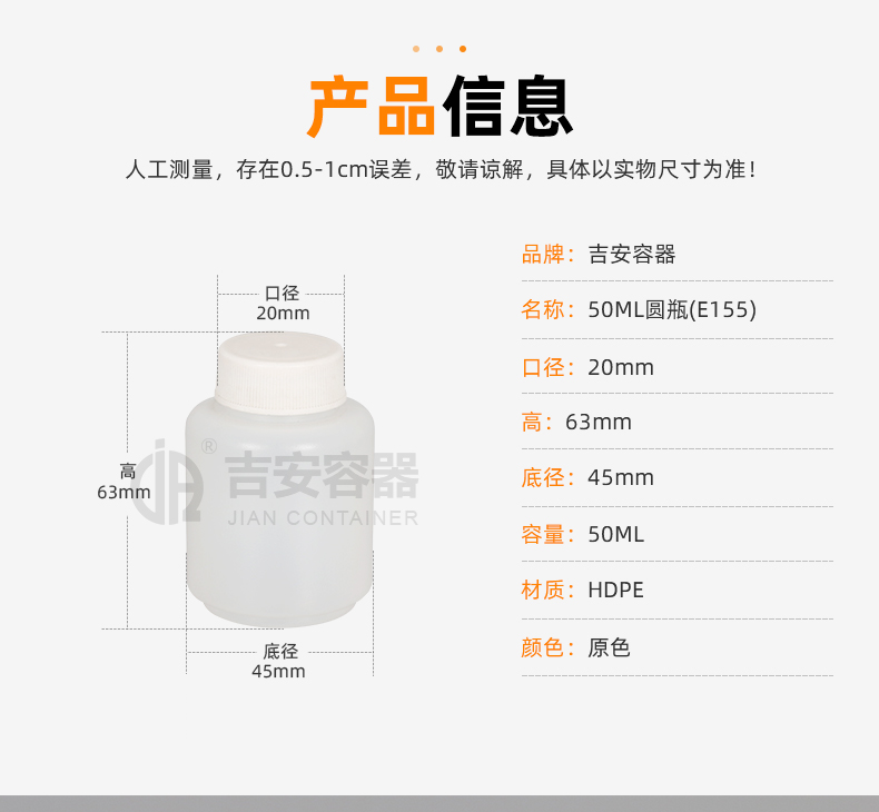 小口塑料瓶采用全新HDPE塑膠原料吹塑而成,具備韌性好、耐酸堿、耐腐蝕、不變形,密封性能佳等特點,可根據客戶需求定製、改色、產品適用於化工、清洗劑、醫藥、液體、食品、農業等各行業包裝。