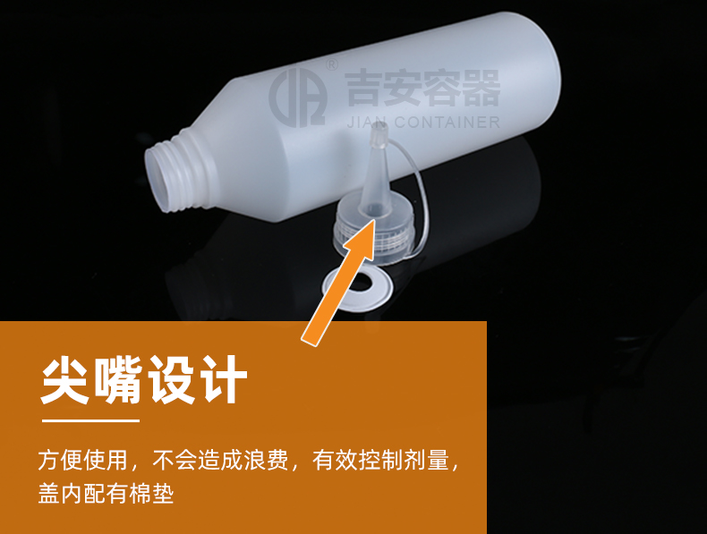 尖嘴瓶適用行業廣泛,多用於膠水包裝、眼藥水包裝、食品調料包裝,因其尖嘴特點,具備方便滴膠,操作時流量可控可調,使用方便。
