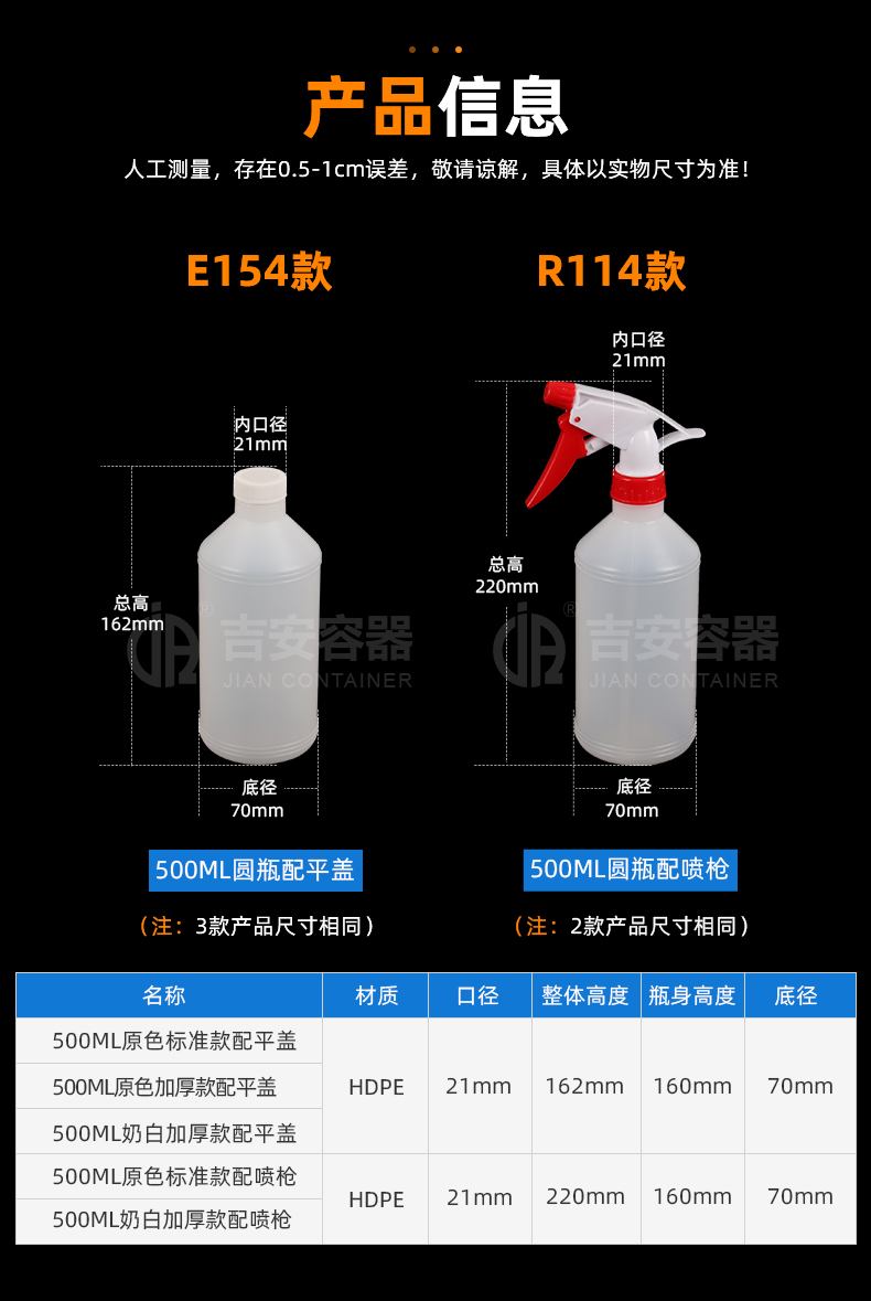 | 品名:500ml圓塑料瓶(E154) | |