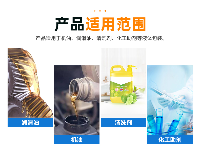 塑料扁罐采用HDPE原材料吹塑而成,具有良好的耐酸堿性及密封性,方形設計方便堆放,不占用空間,美觀實用。具備不變形,使用方便等特征,可根據客戶需求做印刷及貼膜,產品適用於尿素、機油、汽油、清洗劑、化工助劑、食品添加劑等液體包裝。